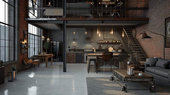 La decoración industrial incluye espacios abiertos