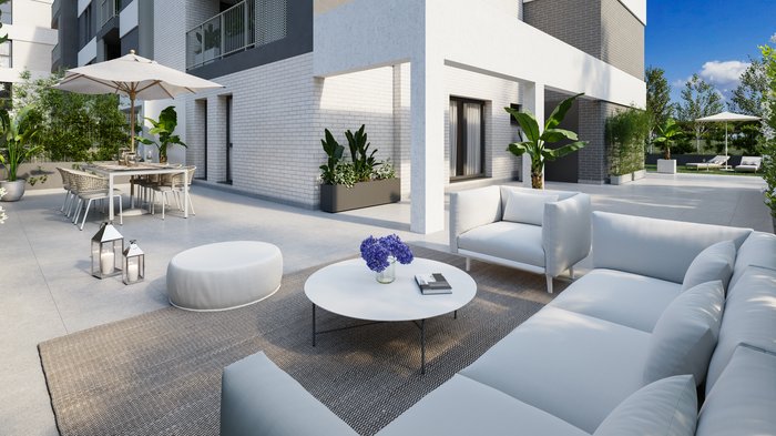 Esta promoción incluye pisos de obra nueva con distribuciones de 2, 3 y 4 dormitorios, ideales para familias, parejas o aquellos que buscan su primera vivienda. Cada piso incluye garaje y trastero y las cocinas se entregan amuebladas y equipadas.