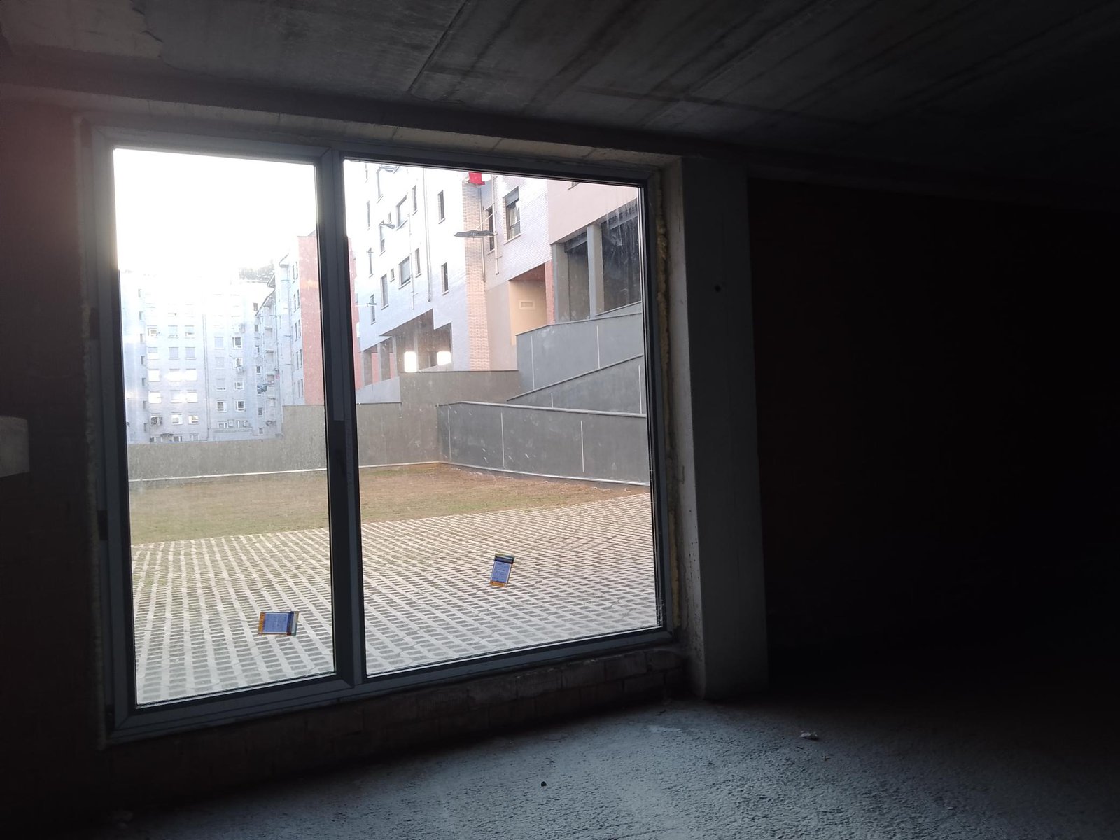 En la zona exterior del soportal, los locales tendrán un acceso cerrado de forma provisional por una puerta metálica. Los huecos de los locales al patio interior en planta de cota de patio, estarán acabados con carpintería de pvc con rotura de puente térmico y vidrios similar al resto del edificio.